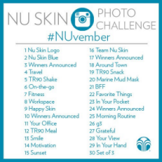 Nu Skin’s #NUvember photo challenge was huge success. Thank you for participating and sharing your photos with us. We enjoyed seeing your photos on Facebook, Twitter, Instagram and Google+, and hope to see many more tagged #NuSkin going forward. Congratulations to those who were chosen for our daily prizes.